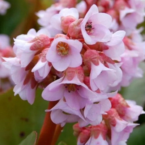 В апреле-мае на крепких цветоносах распускаются нежные, колокольчатые цветки светло-розового оттенка. Соцветия компактные, плотные, эффектно контрастируют с темной листвой. Цветение длится до четырёх недель, сохраняя свежесть и форму. Аромат лёгкий, почти неуловимый, что особенно ценят в небольших садах и рядом с зонами отдыха.