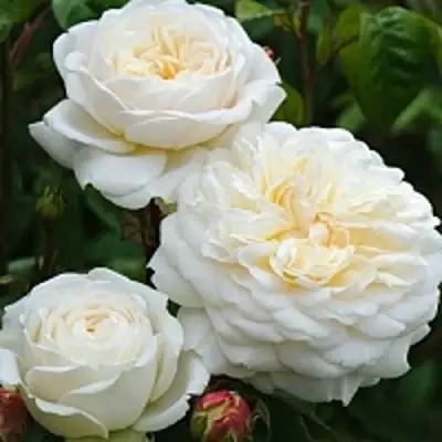 Роза Транквилити обладает изящными округлыми цветками, которые отличаются нежной окраской. Бутоны имеют слегка желтоватый оттенок, тогда как раскрытые цветы имеют белоснежный окрас с мягким желтоватым налетом. Каждая букетная веточка состоит из 3-5 цветков среднего размера (диаметром от 3 до 6 см), создавая живописные соцветия, которые будут радовать глаз на протяжении всего цветения. Аромат этих роз слабый, с легкой яблочной ноткой, что добавляет нежности и умиротворения в атмосферу вашего сада.