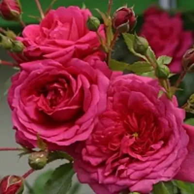 Цветки розы Лагуна очаровывают своей красотой. Окраска бутона пурпурная, а цветок сам розового цвета, с яркой насыщенностью. Форма бутона округлая, а форма цветка - чашевидная. Их размер достаточно крупный, с диаметром от 10 до 11 см. Количество лепестков может достигать от 50 до 80, образуя густо махровый цветок. Цветки располагаются в соцветиях, по 6-8 цветков на стебле.