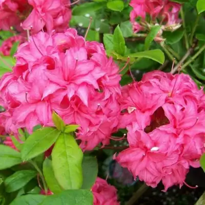 Цветение азалии Хоумбуш начнется в мае и продлится до июня, создавая феерическое шоу из крупных, махровых цветов карминно-розового оттенка, которые собраны в шаровидные соцветия. Каждый цветок достигает размера 6-8 см и состоит из 9-10 остроконечных лепестков с закрученными краями. Эти удивительные цветы не только привлекают взгляды, но и излучают средний аромат, который дополнит атмосферу вашего сада. Продолжительность цветения составляет 3-4 недели, и с каждым днем ваша азалия будет становиться все более притягательной.
